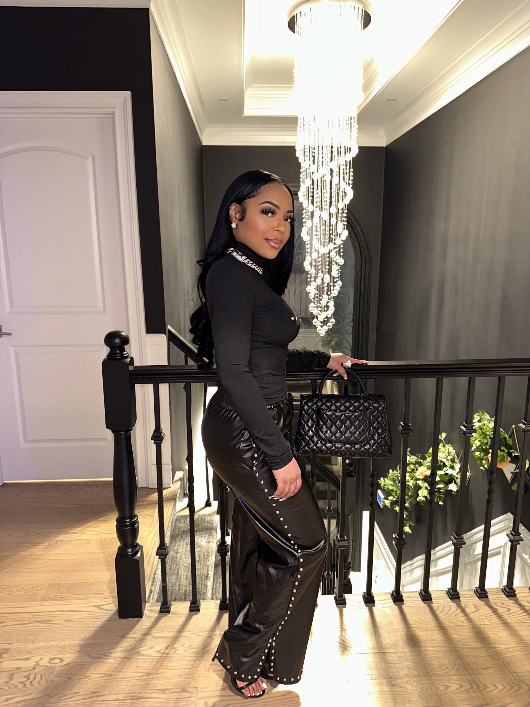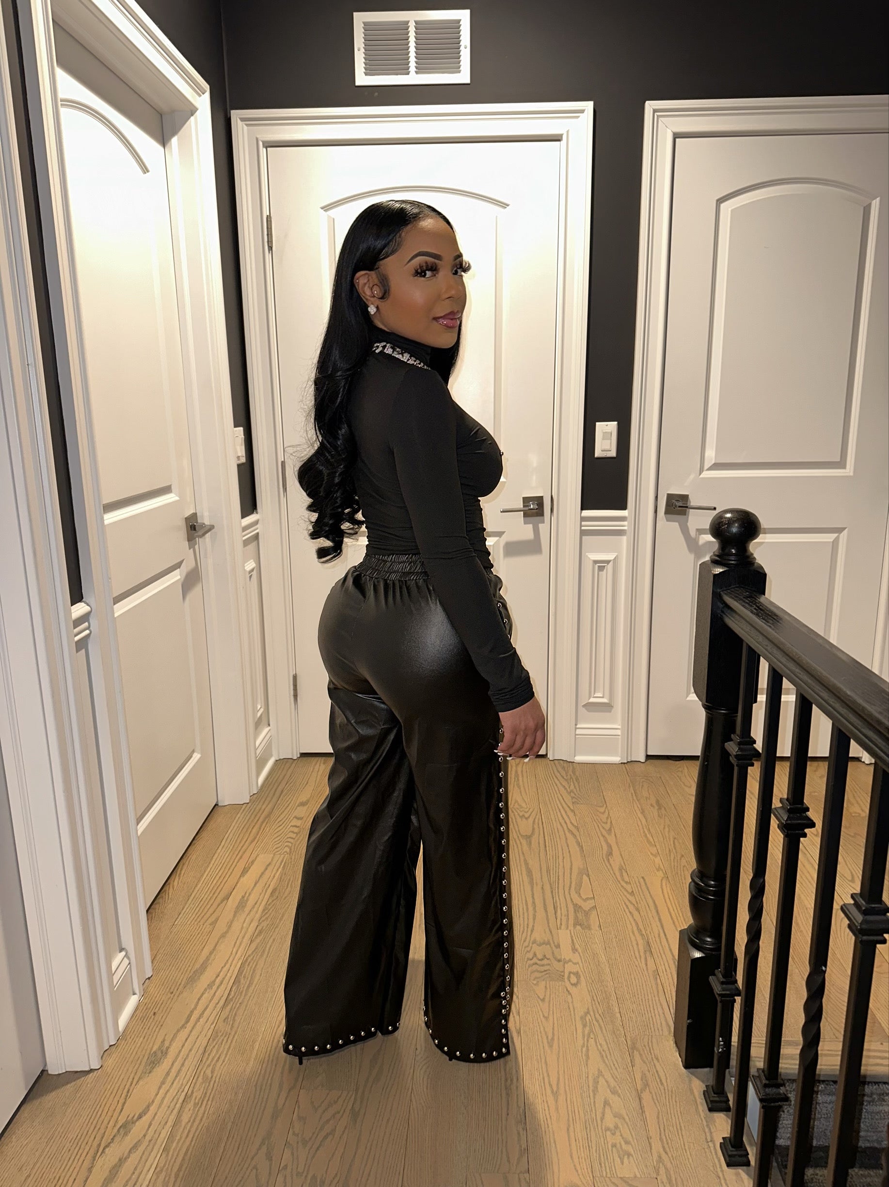 Leather pants with stud trimming. (Has stretch) model wearing size small